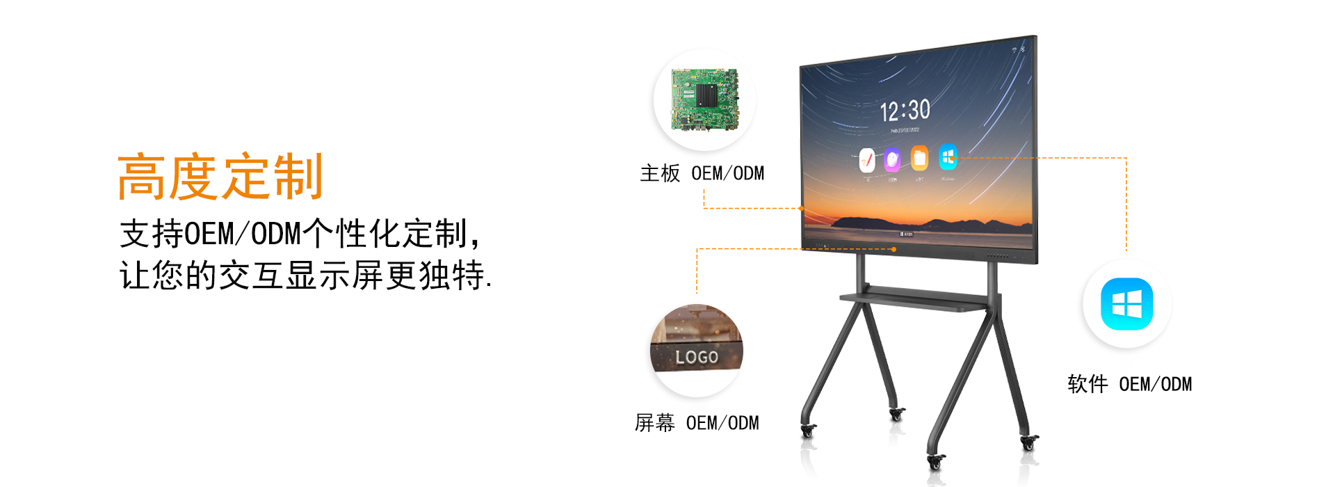Riotouch OEM/ODM 服务,为您的需求构建独特的教学会议一体机。从硬件到软件,从云服务到包装,我们经验丰富的工程师和制造团队将您的想法变为现实!