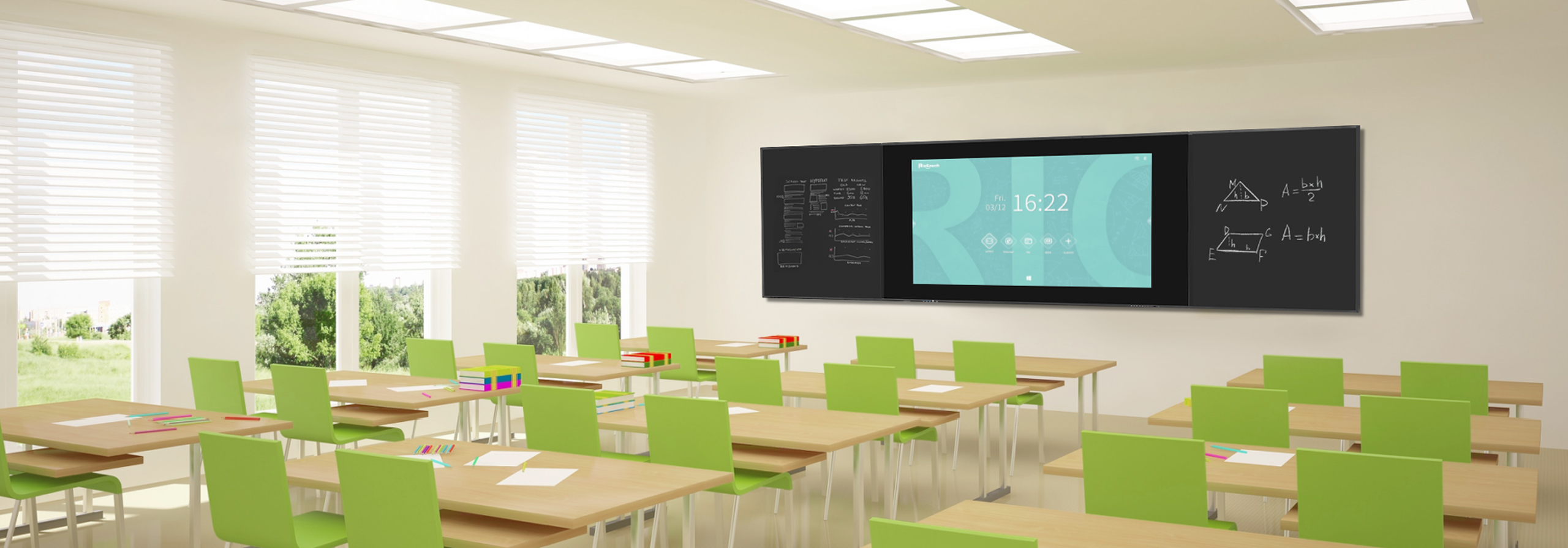 Riotouch智慧黑板采用可固定&可移动设计,实现多媒体教育,支持传统手写,中间互动显示,两面书写副板,结合现代与传统风格,为您的教育带来更鼓舞人心的课堂体验