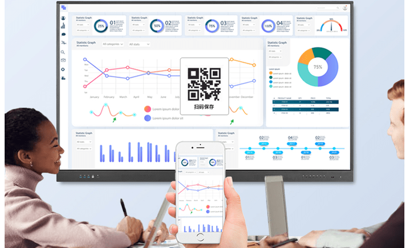 通过传屏软件,轻松实现将手机、平板、电脑上的内容文档传输到一体机上,让会议更轻松